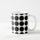 Niedliche und trendige Mini Polka Dots Tasse. Dieses Design zeichnet sich durch kleine Kreispolka-Punkte in Schwarz-Weiß aus. Text kann diesem Design hinzugefügt werden, um ihm eine persönliche Touch zu geben.