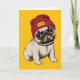 Dieses Design verfügt über einen niedlichen Hipster Welpe Mops in einem roten Mützenkappe.