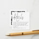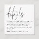 MINI QR Code Skript Schwarz-weiße Hochzeitsdetails. Eine charmante Miniatur Größe 2.5" Quadrat, um mit Ihren Einladungen mit Ihrem Qr-Code auf Ihrer Hochzeitswebsite auf der Rückseite. Der Header ist groß und in einem informellen Set-Skript, mit den Details darunter und viel weißem Raum auf einer quadratischen Form für einen zeitgenössischen Stil. Personalisieren Sie die Erholung des Textes einfach. Ihr QR-Code wird automatisch generiert, um den Beispielcode im Design zu aktualisieren, wenn Sie einfach die Beispiel-URL in der Vorlage mit Ihrer eigenen Hochzeitswebsite-URL ändern. Sie können Text- und Hintergrundfarben in eine beliebige Farbe ändern, indem Sie weitere Bearbeitungen vornehmen.