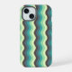 Dieses Design zeichnet sich durch ein nahtloses Muster von waagerechten, waagerechten Linien aus, die abwechselnd in sanften Minzgrün-, aquamarin- und Holzkohletönen gehalten sind. Die regelmäßigen, welligen Wellen erzeugen einen visuell beruhigenden Effekt, der oft mit Retro oder modernem minimalistischem Design assoziiert wird. Es ist ein Beispiel für ein geometrisches, abstraktes Muster, das an das Rippen von Wasser oder Schallwellen erinnert.