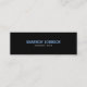 Schlanke Visitenkarte. Schmaler, minimaler Entwurf des kundengerechten blauen Textes auf schwarzem Hintergrund. Gewohnheits-, einfache und sauberedünne MiniVisitenkarte.