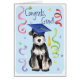 Begrüßen Sie Ihren Lieblingsschüler mit einem niedlichen Miniaturschnauzer-Absolvent mit einem Mörtel inmitten einer Konfetti-Flasche.