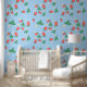Eine niedliche Tapete, die ein reizvolles und spielerisches Muster verstreuter Mini-Erdbeeren auf einem weichen, himmelblauen Hintergrund aufweist. Die Erdbeeren werden mit grünen Blätter in kräftigem Rot gehalten, und sie sind mit kleinen, zarten, weißen oder hellgelben Erdbeeren-Blume vermischt, was den Charme noch verstärkt. Der Gesamteindruck ist fröhlich, frisch und süß, und eignet sich somit hervorragend für die Dekoration von Kinderzimmern, Kleinkindern, Kinderzimmern.