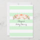 Personalisierte Baby Dusche Einladungen in minzgrün-weiß Streifen Muster mit pfirsichrosa Aquarell Vintage Blume. Ideal für eine Frühjahr- oder Sommerdusche.