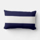 Teil der Ozeandekoration Design von Sandy Closs MED STRIPE weiße DOLPHINS auf einer Seite marineblau Kissen und marineblau und weiß Streifen auf der Rückseite.