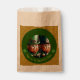 Miniatur Leprechaun in 3D + "Happy St Patrick's Day" in einem grünen Kreis + goldfarbenes Texturpapier (Bild gedruckt) als Hintergrund. Design auf Gunst Tasche.