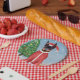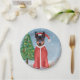 Miniatur Pinsch Hund im Schnee mit Weihnachtsgesch Pappteller