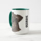 Individueller Schlamm für Ihren Miniaturschnauzer. Passen Sie die Bilder und den Namen Ihres Hundes an; auch Schriftart, Farben und Tasse können geändert werden.