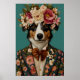 Miniature American Shepherd im Anzug Poster, Miniature American Shepherd Portrait, Ölmalerei, Tierkopf Menschlicher Körper Poster, Hundeposter