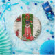 Miniatur Pinscher Hund Weihnachten sitzen außerhalb dekorierten Zuhause mit Weihnachtskranz, Weihnachtsbaum ist eine perfekte Weihnachtsgeschenk Idee für Hundefreunde.