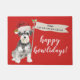 Niedlich Happy Howlidays Miniatur Schnauzer Hund mit einer Weihnachtsmannmütze mit einem Banner mit der Nachricht Paw - la - la - la. Türmatte Set auf einem roten Hintergrund. Besuchen Sie unseren Shop, um eine große Auswahl an Hundebrotten zu sehen
