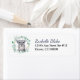 Ein Aquarellporträt eines blauen grauen Miniaturschnauzers in einem blau-grünen Blattkranz ist das Feature auf der links Seite dieser Rücksendeadressen-Aufkleber. Ihr eigener Text ist rechts. Ideal für alle, die einen Schnauzer Lieben.