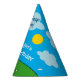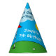 Kid's putt Minigolfsport Birthday Party Party Hat. Funny farbenfrohe Illustration für Kinder. Geeignet für Jungen und Mädchen. Sportliche Feste mit Aktivitäten für kleine Kinder. Ein schöner Minigolfplatz mit Fahne, Ball, Wolken und Sonne. Niedliche Typografie-Vorlage. Ideal, um den Gästen in Ihrem Par-tee zu danken!