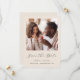 Diese schlichte, minimalistische Save the Date Karte weist ein quadratisches Foto über den Worten "Save the Date" in elegantem schwarzen Handschrift auf, gefolgt von den Namen der Ehepaare, dem Hochzeitstag und der Stadt in sans serif Schriftart auf neutralem beige Hintergrund. Fügen Sie eine detailliertere Nachricht mit weiteren Informationen auf der Rückseite hinzu.