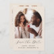 Diese schlichte, minimalistische Save the Date Karte verfügt über einen Boho-Foto-Bogen über den Worten "Save the Date" in eleganter Schrift, gefolgt von den Namen der Ehepaare, dem Hochzeitstag und der Stadt in sans serif Schriftart auf beige Hintergrund. Fügen Sie ein zweites, horizontales Foto und eine ausführlichere Nachricht mit zusätzlichen Informationen auf der Rückseite hinzu.