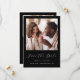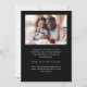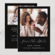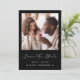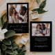 Diese schlichte, minimalistische Save the Date Karte verfügt über ein quadratisches Foto über den Worten "Save the Date" in elegantem, weißem Handschrift-Skript, gefolgt von den Namen der Ehepaare, Hochzeitstag und Stadt in sans Serif Schriftart auf schwarzem Hintergrund. Fügen Sie ein zweites, horizontales Foto und eine ausführlichere Nachricht mit zusätzlichen Informationen auf der Rückseite hinzu.