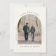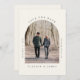 Minimal leichte Creme Ankündigung Datum freihalten Karte mit Ihrem Foto in einem gewölbten Bilderrahmen und schlichter moderner Typografie.