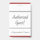 Dieses berechtigten einfache AbzeichenAusrüstungsbeschreibungen die Mitteilung "Gast! " und ein kundengerechter Firmennamen oder andere kundenspezifische Mitteilung. Ein Abzeichen so könnte benutzt werden, um zu identifizieren, dass jemand an einem Arbeitsplatz oder an einem Geschäft ein berechtigter Gast/ein Besucher ist. [~Z0000307]
