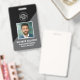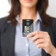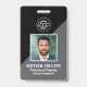 A modern black and white minimal corporate photo design with a clean, professional layout. Personalize with an employee photo, name, and your logo, making it ideal for business teams seeking a polished corporate identity and cohesive professional look. An additional custom text field is located on the back for return information or other details.
