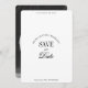 This classy, elegant save the date card in black and white features a minimalist design with "save the date" styled with a mixture of classic text and elegant calligraphy script that lends a sophisticated, classy vibe. The design also features a place to add your photo that covers the entire back of the card.