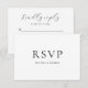 RSVP Card für islamische Hochzeiten und Ereignisse. Einfache weiße Farbkarte mit einem klassischen schwarzen Script-Schriftart. Elegante Typografie. Modern. Minimal. Formell. Die Worte "freundlich antworten" sind in stilvollem Schriftart in der Mitte geschrieben. Diese Antwortkarte kann von Ihnen mit dem Design-Tool personalisiert werden. Es wird mit Vergnügen angenommen, bedauert lehnt und totale Teilnahme mit einem Bindestrich über die links. Sie können die Namen des Paares auf dieser druckbaren Vorlage bearbeiten. Blank weißer Umschlag.