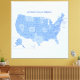 This clean, minimalist illustration features a simplified map of the United States with clearly labeled states in calm blue tones. Designed with precise outlines and balanced typography, it offers a modern and educational aesthetic that works beautifully for décor, learning spaces, and geography lovers. The soft color palette and uncluttered layout make it easy to read while maintaining a stylish, contemporary look inspired by Scandinavian and minimalist design principles.