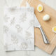 A delicate seamless floral pattern kitchen towel featuring elegant line art illustrations of wildflowers, leafy stems, and tiny berry branches on a clean white background. This minimalist botanical design uses soft neutral tones and fine outlines to create a calm, modern aesthetic.
