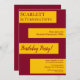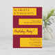 Dieses elegante Bordeaux und Gold zum Geburtstag laden zu einem modernen Geburtstag ein. Das schlichte Design besticht durch elegante bordeauxfarbene Kalligraphie auf goldenen Streifen auf bordeauxrotem Hintergrund.