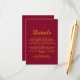 Diese elegante Bordeaux und Goldhackkarte eignet sich perfekt für eine moderne Hochzeit und bietet elegante Goldkalligraphie auf bordeauxrotem Hintergrund.