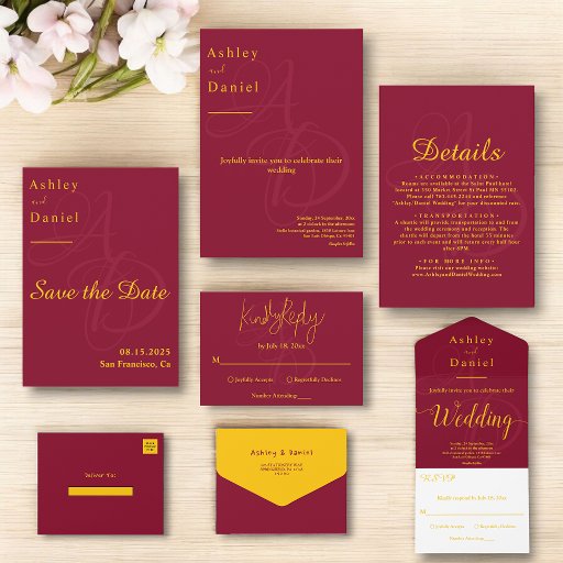 Chic Burgundy And Gold Monogram Wedding CollectionDesignt von Mohamed Sherif