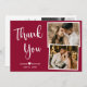 Elegantes, Minimalistisches, handgeschriebenes Script Burgundy White Wedding Foto Collage Dankeschön Karte. Stilvolle Hochzeit Multi Foto danke Ihnen Karte Vorlage mit zwei (2) Foto auf der Vorderseite und ein (1) Foto auf der Rückseite. Mit dem Text "Danke" in einem hübschen handgeschriebenen Typografie-Skript-Schriftart in Weiß auf weinrot oder bordeauxfarbenen Hintergrund. Personalisieren Sie den individuelle Name und danken Sie Ihnen Nachricht. Wenn Sie lieber Ihre Notiz handschreiben, löschen Sie einfach den Beispieltext, um mehr Platz zu machen. Wenn Sie Hilfe oder Matching Artikel benötigen, wenden Sie sich bitte an Designer!
