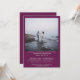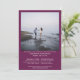 Dieses stilvolle Cassis lila, magenta oder berry gefärbte Hochzeitsessen Probe & Probe Dinner Einladung ist modern, elegant und minimalistisch. Es enthält ein Foto des Ehepaares mit unterformatiertem Text, der alle relevanten Informationen enthält. Einfach, schön und elegant.