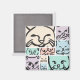 A simple and expressive set of cat faces drawn in bold black lines on soft pastel backgrounds. Clean, modern, and playful.