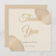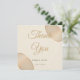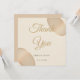Eine minimalistische Dankeschön-Karte, die die passende Einladung ergänzt. Es hat einen weichen, matten Elfenbeinhintergrund, der durch zwei halbtransparente Kieselsteine in warmen Beige- und Champagnertönen in den Ecken hervorgehoben wird. Das subtile Design fügt eine Touch von Raffinesse hinzu und verlasst den Text, der für Ihre Dankesbotschaft bearbeitet werden kann.
