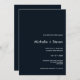 Minimalistische Mitternachtsblau und Weiß Hochzeitseinladungen mit dünnen und modernen Sans Serif Schriftart. Alle Schriftart, Farben und Größen sind vollständig personalisierbar. Alle Farben sind verfügbar. Bitte kontaktieren Sie uns unter citronelladesign@gmail.com für eine individuelle Anfrage