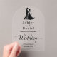 Diese elegante, schwarz-weiße Akrylarsch-Hochzeitseinladung eignet sich perfekt für eine moderne Hochzeit. Das einfache Design zeichnet sich durch eine elegante schwarze Kalligraphie und eine Braut- und Bräutigam-Illustration auf einem transparenten Hintergrund aus
