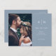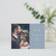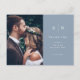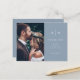 Diese eleganten, modernen Hochzeitskarten mit Postkarten zeichnen sich durch ein schlichtes, weißes und staubblaues Textdesign aus, das minimalistisch wirkt und Ihr persönliches Lieblings-Hochzeitsgeschenk-Foto ausstrahlt. Fügen Sie Ihre Initialen oder Monogramme hinzu, um sie komplett zu Ihrem eigenen zu machen.
