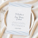 Timeless baptism invitation that combines soft blue stripes on light background, a delicate silver foil shell cross symbol, and handscript font. Elegant and modern.