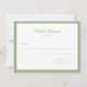 A minimal and classic wedding RSVP card featuring a soft sage green border and elegant script typography. Designed with a clean, uncluttered layout for easy guest responses, this timeless piece pairs beautifully with formal, traditional, and nature-inspired wedding stationery suites.