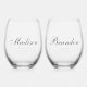 Minimal Classic Script Couple Names Engagement Stemless Wine Glass. Add your names and engagement date to these elegant and simplistic stemless wine glasses. Makes a great gift and keepsake for newly engaged couples.