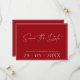 Minimal Crimson Red Script Hochzeit speichern Sie die Date Card. Stilvoll beeindrucken Sie Ihre Hochzeitsgäste mit dieser trendigen, roten Hochzeitskarte, die mit einem wunderschönen weißen Drehbuch auf einem knallroten Hintergrund gerettet ist. Diese Hochzeitskarte rette-the-date mit einem atemberaubenden roten Design, mit modernen und minimalen Farbtupfern, perfekt für Ihre einfache, trendige, minimalistische Hochzeit. Das minimale und moderne Layout hebt das weiße Skript hervor und steht im Gegensatz zum geröteten Hintergrund. Diese Hochzeitskarte rette den Ton für eine wunderschöne Hochzeitslandschaft, umgeben von neutralen oder rosa Blumen und einer passenden Hochzeitsdekoration. Eine perfekte Ergänzung zu jeder romantischen oder hellen und fröhlichen Feier.