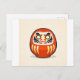 This postcard features a minimalist illustration of a traditional Japanese daruma doll, inspired by classic folk art and woodblock print aesthetics.