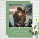 Diese Hochzeit speichert die Dattelkarte mit einem staubigen, grünen Hintergrund und ist die perfekte Leinwand für Ihr Lieblings-Foto. Die einfachen Details erscheinen in weißem Text. Auf der Rückseite befinden sich die Vornamen des Paares. Einzigartig und elegant, kann dieses Design für jede Jahreszeit genutzt werden. Erstellt von der einfachen Farmhouse Press.