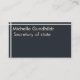 Eine Visitenkarte mit einem einfachen und minimalistischen Design, das modern und nicht günstig aussieht. Auf der Vorderseite der Karte werden Name, Titel, Adresse, E-Mail und Telefonnummer angezeigt. Die Rückseite der Karte hat ein einfaches Design mit nur dem Namen und Titel, sowie Linien, die einen eleganten Eindruck geben. Diese Visitenkarte ist für Firmen geeignet, die es wagen, einfach, aber nicht billig zu erscheinen.