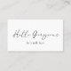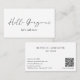 Moderne typografische Visitenkarte in Schwarz/Weiß mit einem schlichten und minimalen Design mit "Hello Gorgeous" in einer eleganten Schriftzeichen-Typografie zusammen mit Ihrer personalisierten Botschaft. Auf der Rückseite finden Sie Ihre Kontaktdaten und optionalen QR-Code. Sie können den QR-Code entfernen und die Farben der Schriftart und des Hintergrunds im Entwurfstool ändern.