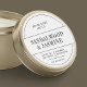 Minimalistisches, schwarz-weißes, rundes Produktdesign mit modernem Design und eleganten Serifen und serifenlosen Schriftart. Dieses voll bearbeitbare Kerzenetikett eignet sich hervorragend für Ihre Gläser oder als Blechdeckeletikett, einfach, aber elegant, und überzeugt mit Sicherheit. Steigern Sie Ihr Produktverpackungsdesign mit diesem stilvollen Produktetikett.