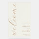 Begrüßungsschild mit eleganter Kalligraphie-Schriftzeichen-Typografie.