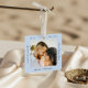 Feiern, wo Ihr ewig mit diesem eleganten und zeitlosen Ehering-Sake begann. Dieses wunderschöne, minimalistische und moderne Foto-Ornament besticht durch ein hochgeschätztes Foto an der Vorderseite und ein weiteres an der Rückseite - ein perfektes Mittel, um Ihre unvergesslichsten Momente aus Hochzeit in Urlaubsort oder Flitterwochen zu erleben. Personalisieren Sie Ihre Namen, Hochzeitsdatum oder Hochzeitsfeiertage, Ort, Koordinaten und ein individuelles Monogramm, um einen einzigartigen Keepake zu erstellen, der Ihre Liebe erzählt. Ideal für Neuvermählte, Reisende oder Paare, die gemeinsam ihre ersten Weihnachten feiern, ist dieses Ornament eine herzliche Erinnerung Ihrer bedeutendsten Reise - der Anfang für immer. Design von © Moodthology Papery.