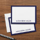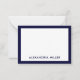 Doppelseitige, zeitlose, benutzerdefinierte Kartendesign-Features marineblau-weiße Monogramm-Design mit Namen in den unteren Drittel, gerahmt in Marine. Elegante Typografie, die mit Ihrem Namen oder benutzerdefinierten Text personalisiert werden kann. Auf der Vorder- und Rückseite ist Platz für Ihre handgeschriebene Note.