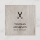 Minimalistische, anpassbare Visitenkartenvorlage mit Holzhintergrund und schwarzer Schere. Modernes, elegantes Design, perfekt für Haarstylisten, Friseur, Friseur